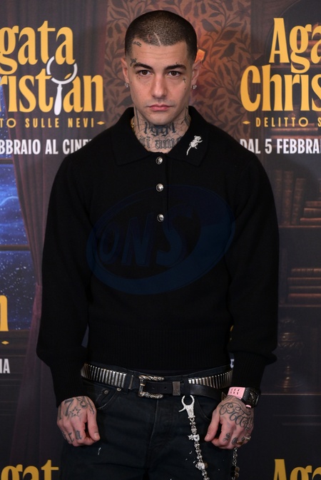 Tony Effe attends the photocall for the film Agata Christian - delitto sulle nevi at Hotel Bernini Bristol. Rome, January 28, 2026., Credit:Massimo Landucci / Avalon