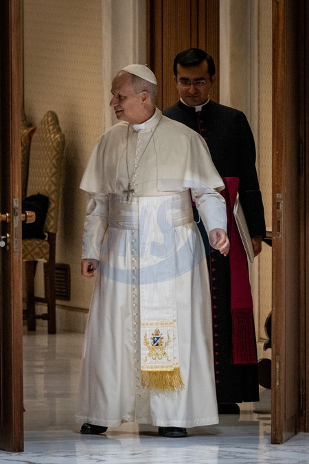 Pope Leo XIV leads his traditional Wednesday General Audience in Paul VI Audience Hall in Vatican City, Vatican, on 28 January 2026., Credit:Stefano Costantino TTL / Avalon
