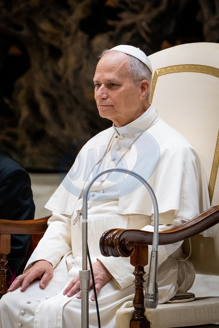 Pope Leo XIV leads his traditional Wednesday General Audience in Paul VI Audience Hall in Vatican City, Vatican, on 28 January 2026.