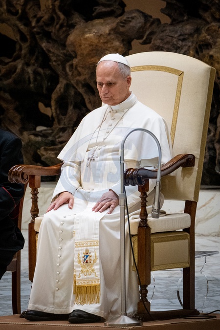 Pope Leo XIV leads his traditional Wednesday General Audience in Paul VI Audience Hall in Vatican City, Vatican, on 28 January 2026.