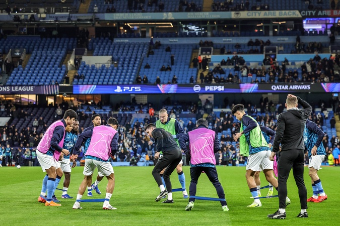 Erling Haaland of Manchester City and his teammates in the pregame warmup session during the UEFA Champions League Matchday 8 of 8 match Manchester City vs Galatasaray at City of Manchester Stadium, Manchester, United Kingdom on 28 January 2026, Credit:Mark Cosgrove/News Images / Avalon