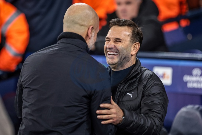 Pep Guardiola manager of Manchester City shakes hands with Okan Buruk manager of Galatasaray before the game during the UEFA Champions League Matchday 8 of 8 match Manchester City vs Galatasaray at City of Manchester Stadium, Manchester, United Kingdom on 28 January 2026, Credit:Mark Cosgrove/News Images / Avalon
