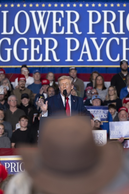 President Donald Trump delivers an economic speech at the Horizon Events Center in Clive, Iowa on Tuesday, January 27, 2026., Credit:Molly Riley / Avalon