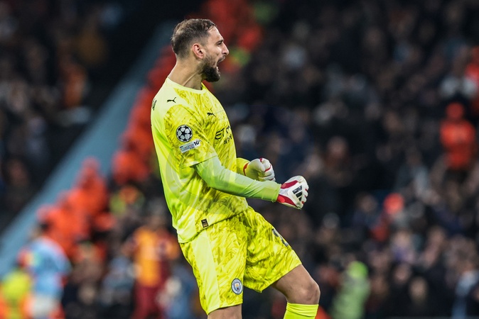 Manchester City goalkeeper Gianluigi Donnarumma celebrates a goal scored by Rayan Cherki of Manchester City to make it 2-0 during the UEFA Champions League Matchday 8 of 8 match Manchester City vs Galatasaray at City of Manchester Stadium, Manchester, United Kingdom on 28 January 2026, Credit:Mark Cosgrove/News Images / Avalon