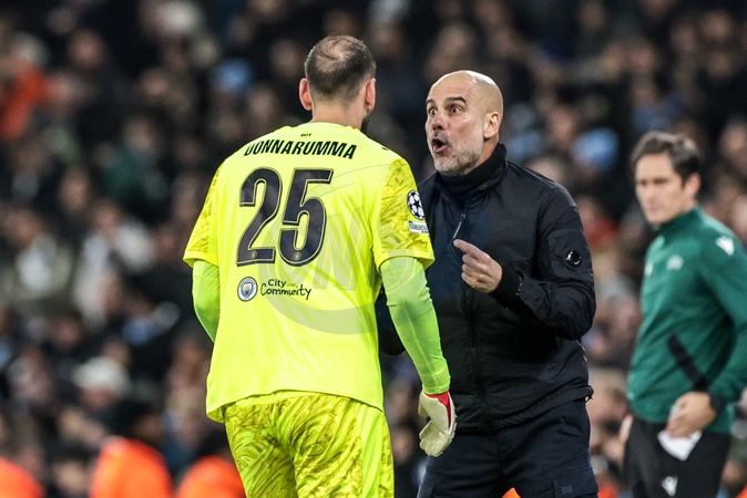 Pep Guardiola manager of Manchester City gives instructions to Manchester City goalkeeper Gianluigi Donnarumma during the UEFA Champions League Matchday 8 of 8 match Manchester City vs Galatasaray at City of Manchester Stadium, Manchester, United Kingdom on 28 January 2026, Credit:Mark Cosgrove/News Images / Avalon