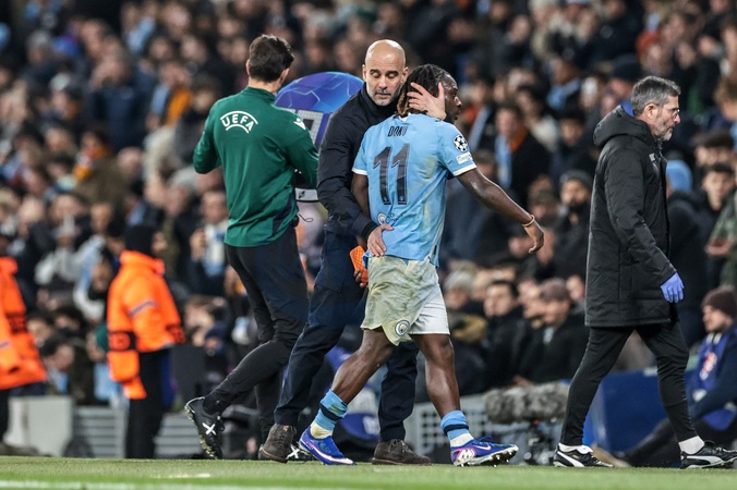Jeremy Doku of Manchester City leaves the field of play with an injury, replaced by Phil Foden of Manchester City during the UEFA Champions League Matchday 8 of 8 match Manchester City vs Galatasaray at City of Manchester Stadium, Manchester, United Kingdom on 28 January 2026, Credit:Mark Cosgrove/News Images / Avalon