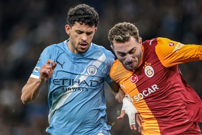 Matheus Nunes of Manchester City and Barıs Alper Yılmaz of Galatasaray battle for the ball during the UEFA Champions League Matchday 8 of 8 match Manchester City vs Galatasaray at City of Manchester Stadium, Manchester, United Kingdom on 28 January 2026, Credit:Mark Cosgrove/News Images / Avalon