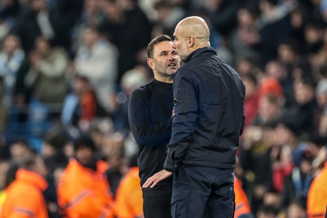 Okan Buruk manager of Galatasaray shakes hands with Pep Guardiola manager of Manchester City after the game during the UEFA Champions League Matchday 8 of 8 match Manchester City vs Galatasaray at City of Manchester Stadium, Manchester, United Kingdom on 28 January 2026, Credit:Mark Cosgrove/News Images / Avalon