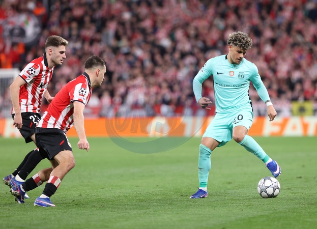 Maxi Araujo (Sporting Portugal), Andoni Gorosabel (Athletic Club) and Robert Navarro battle for the ball, Credit:Juan Lazkano Photobilbao / Avalon
