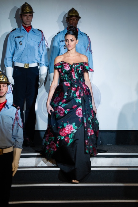 A model walks the runway as Firemen pose during the Franck Sorbier Haute Couture Week Spring/Summer 2026 show as part of Paris Fashion Week, Credit:Lounis Tiar / Avalon