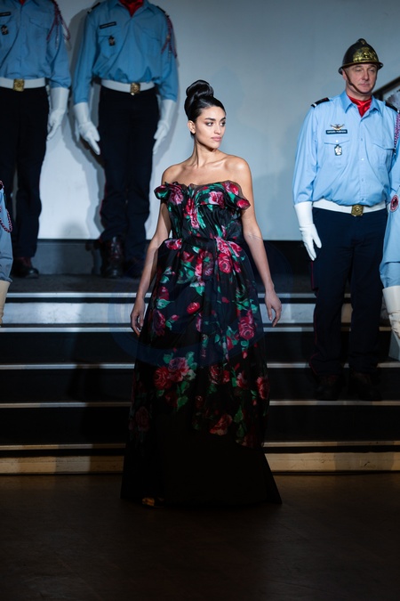 A model walks the runway as Firemen pose during the Franck Sorbier Haute Couture Week Spring/Summer 2026 show as part of Paris Fashion Week, Credit:Lounis Tiar / Avalon
