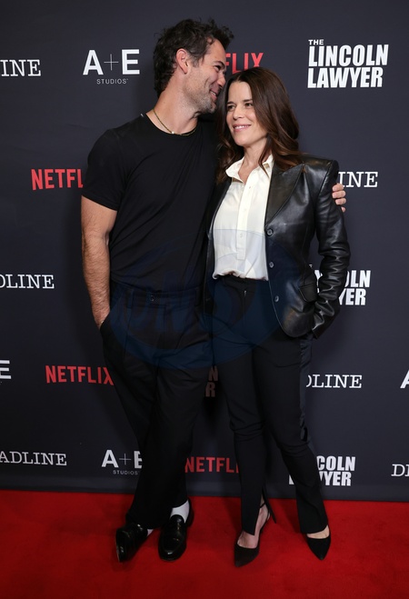 28 January 2026 . Los Angeles, California Manuel Garcia-Rulfo and Neve Campbell At the Premiere Celebration Of "The Lincoln Lawyer" Season 4 hheld at PMC Rooftop Terrace in Los Angeles., Credit:Sadou Faye / Avalon