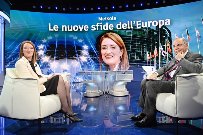 Rai1, television program Porta a Porta. Pictured is journalist Bruno Vespa with Roberta Metsola, President of the European Parliament. Rome, Italy 29 Janauary 2026, Credit:Maria Laura Antonelli / Avalon