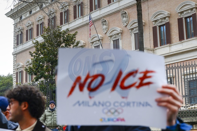 January 29, 2026, Rome, Sit-in protest against the presence of the American ICE police at the 2026 Milan Cortina Olympics, Credit:Cristiano Minichiello / Avalon