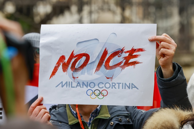 January 29, 2026, Rome, Sit-in protest against the presence of the American ICE police at the 2026 Milan Cortina Olympics, Credit:Cristiano Minichiello / Avalon