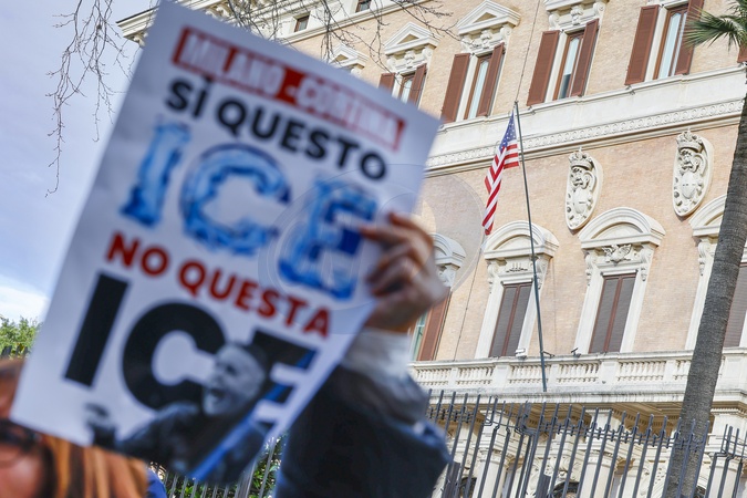 January 29, 2026, Rome, Sit-in protest against the presence of the American ICE police at the 2026 Milan Cortina Olympics, Credit:Cristiano Minichiello / Avalon