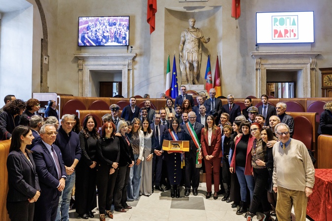 The Capitoline Wolf was presented to the mayor of Paris on the occasion of the 70th anniversary of the twinning between Rome and Paris.