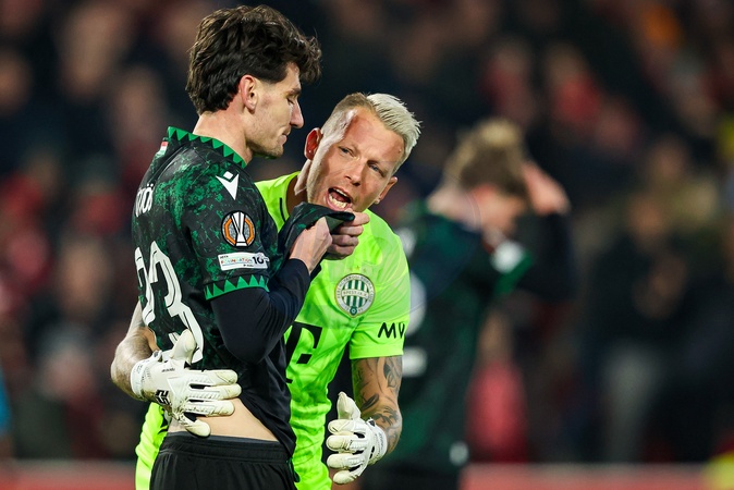 Bence Otvos of Ferencváros is encouraged after an injury by Ferencváros goalkeeper David Grof during the UEFA Europa League Matchday 8 of 8 Nottingham Forest vs Ferencvaros at City Ground, Nottingham, United Kingdom, 29th January 2026, Credit:Ae Cosgrove/News Images / Avalon
