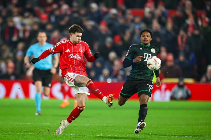 Neco Williams of Nottingham Forest kicks the ball away during the UEFA Europa League Matchday 8 of 8 Nottingham Forest vs Ferencvaros at City Ground, Nottingham, United Kingdom, 29th January 2026, Credit:Ae Cosgrove/News Images / Avalon