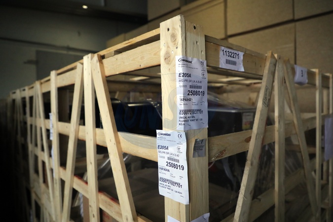 Power equipment is displayed during the transfer of 350 generators from Poland and boilers from the Italian government to Kyiv and communities across Ukraine to help overcome the energy crisis caused by Russian strikes on critical infrastructure, Kyiv region, Ukraine, January 29, 2026., Credit:Yuliia Ovsiannikova / Avalon