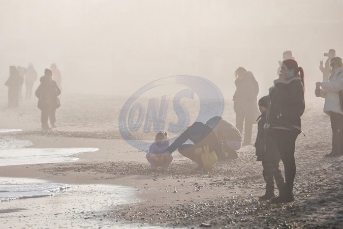 The fog blankets people staying on Lanzheron Beach by the Black Sea on a warm winter day after a spell of cold weather, Odesa, Ukraine, January 29, 2026., Credit:Nina Liashonok / Avalon