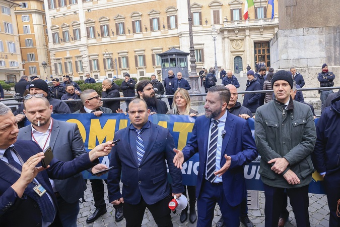January 30, 2026, Rome. The promoters of the Remigration and Reconquest Committee speak to journalists after the press conference at the Chamber of Deputies was canceled for security reasons. Pictured from right are Jacopo Massetti, Luca Marsella, and Ivan Sogari., Credit:Richard De Luca / Avalon