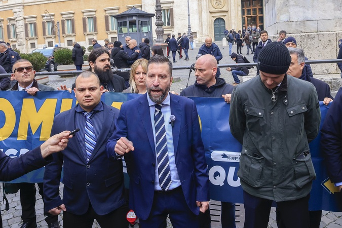 January 30, 2026, Rome. The promoters of the Remigration and Reconquest Committee speak to journalists after the press conference at the Chamber of Deputies was canceled for security reasons. Pictured from left: Ivan Sogari, Luca Marsella, and Jacopo Massetti., Credit:Richard De Luca / Avalon