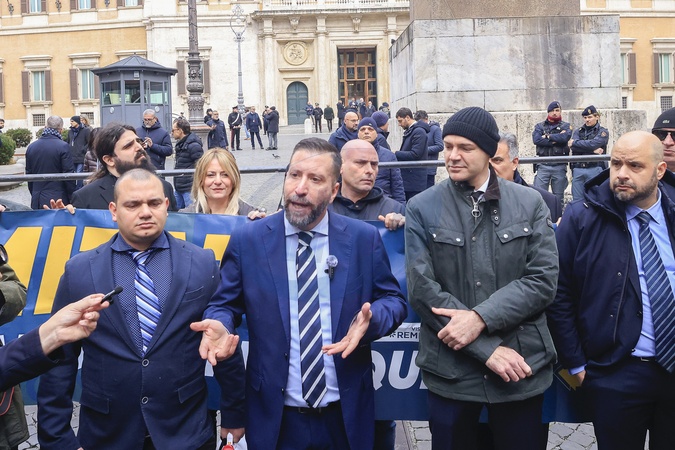 January 30, 2026, Rome. The promoters of the Remigration and Reconquest Committee speak to journalists after the press conference at the Chamber of Deputies was canceled for security reasons. Pictured from left: Ivan Sogari, Luca Marsella, Jacopo Massetti, and Simone Montagna., Credit:Richard De Luca / Avalon