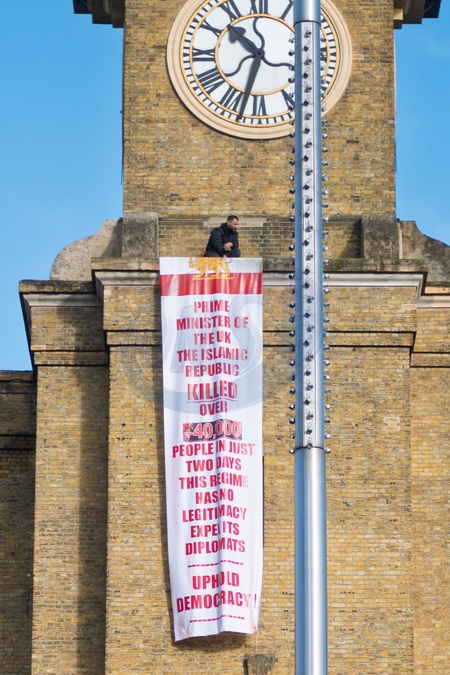 Political rooftop demonstration on Kings Cross train station, Central London, brings localised chaos to commuters..United Kingdom. 30 January 2026, Credit:Mark Fairhurst / Avalon