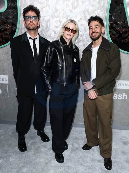 HOLLYWOOD, LOS ANGELES, CALIFORNIA, USA - JANUARY 29: Colin Brittain, Emily Armstrong and Mike Shinoda of Linkin Park arrive at the Warner Music Group Grammy Awards Party 2026 (68th Annual Grammy Awards) held at 6400 Sunset Boulevard on January 29, 2026 in Hollywood, Los Angeles, California, United States., Credit:Xavier Collin / Avalon