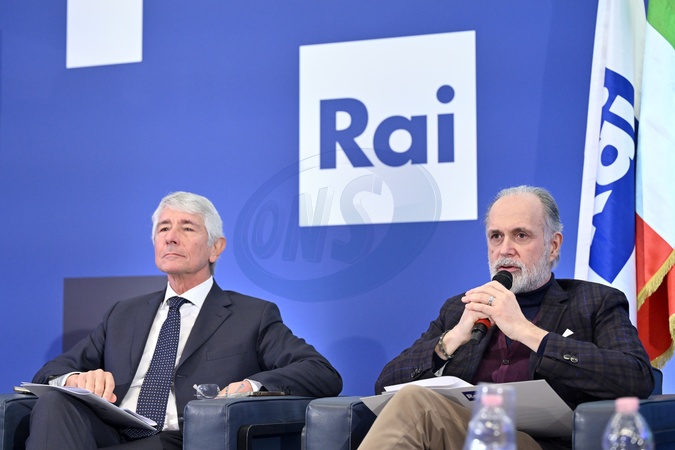 January 30, 2026, Rome. Rai. Press conference to present the XXV Olympic Winter Games Milan-Cortina. Pictured are Giampaolo Rossi, CEO of Rai, and Andrea Abodi, Minister for Sport and Youth., Credit:Maria Laura Antonelli / Avalon