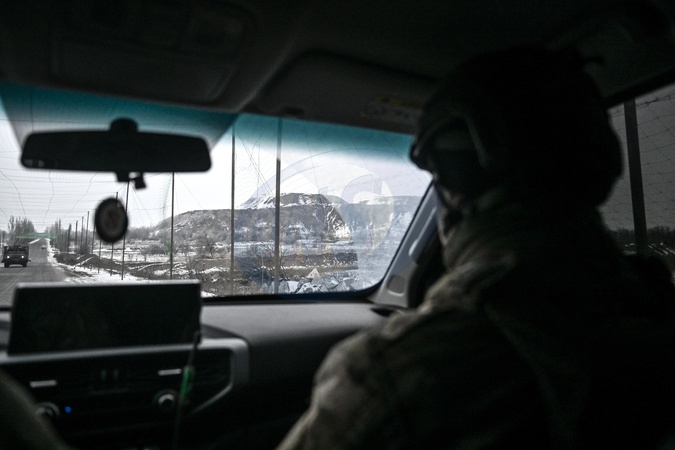 Soldiers drive along the road protected from Russian FPV UAV strikes with an anti-drone net, Donetsk region, Ukraine, January 23, 2026., Credit:Dmytro Smolienko / Avalon