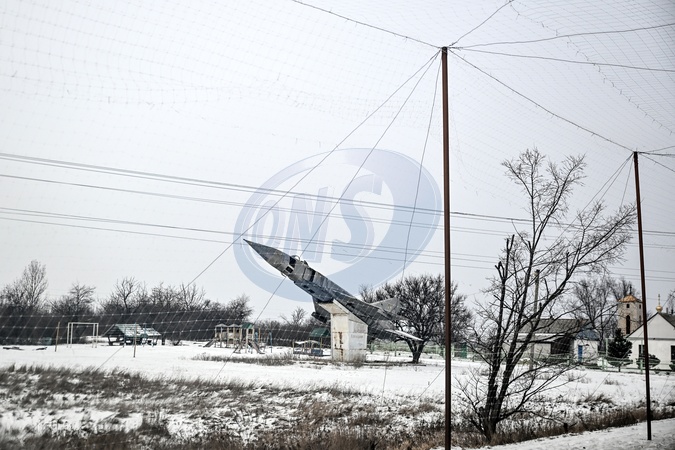 An aircraft used as a monument is seen through an anti-drone net covering the road to protect from Russian FPV drone strikes, Donetsk region, Ukraine, January 23, 2026., Credit:Dmytro Smolienko / Avalon