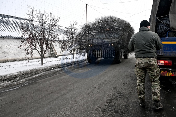 An armoured military car equipped with an anti-drone mesh drives along the road protected from Russian FPV drones with an anti-drone net, Donetsk region, Ukraine, January 23, 2026., Credit:Dmytro Smolienko / Avalon