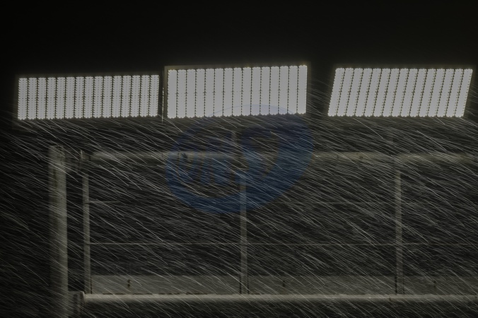 New LED lighting with pouring rain during the Pre Season match Warrington Wolves vs Leigh Leopards at Halliwell Jones Stadium, Warrington, United Kingdom, 30th January 2026, Credit:Mark Cosgrove/News Images / Avalon