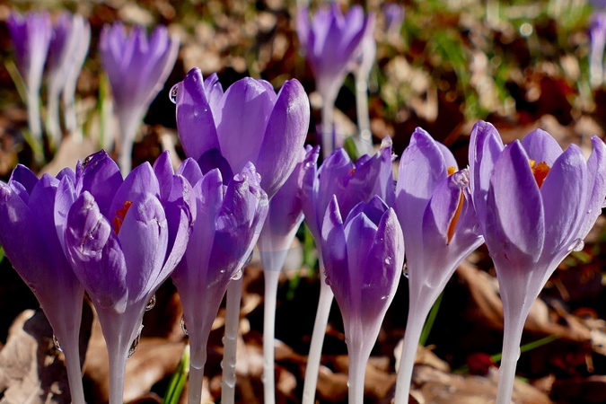 Crocuses in Caversham Court gardens. Crocuses in folklore, heavily rooted in Greek mythology, generally symbolize love, youth, and rebirth, often appearing as a tragic transformation of a mortal youth named Crocus, who was turned into the flower by Hermes. Known as a harbinger of spring, they are associated with festivals like Imbolc and Ostara., Credit:Geoffrey Swaine / Avalon