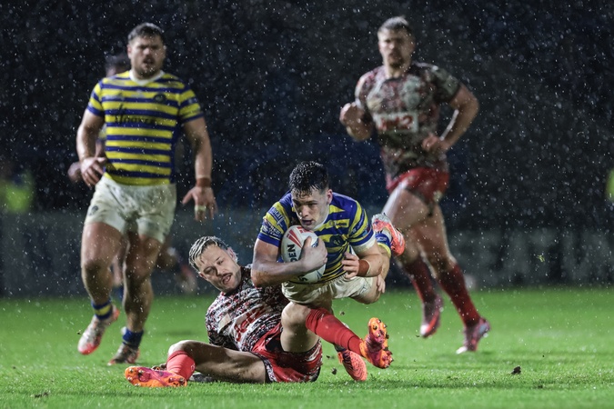 Josh Thewlis of Warrington Wolves in action during the Pre Season match Warrington Wolves vs Leigh Leopards at Halliwell Jones Stadium, Warrington, United Kingdom, 30th January 2026, Credit:Mark Cosgrove/News Images / Avalon
