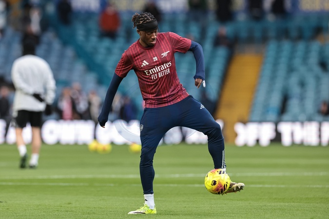 Noni Madueke of Arsenal in the pregame warmup session during the Premier League match Leeds United vs Arsenal at Elland Road, Leeds, United Kingdom, 31st January 2026, Credit:Mark Cosgrove/News Images / Avalon