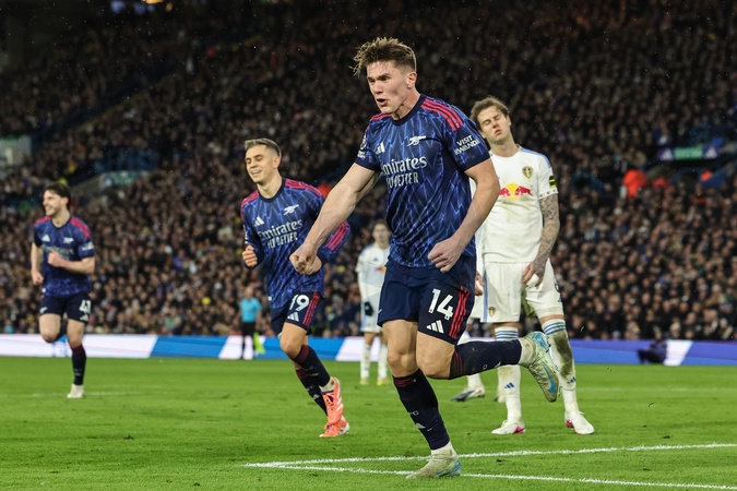 Viktor Gyokeres of Arsenal celebrates his goal to make it 0-3 during the Premier League match Leeds United vs Arsenal at Elland Road, Leeds, United Kingdom, 31st January 2026, Credit:Mark Cosgrove/News Images / Avalon