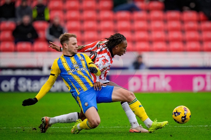 Lamine Cisse of Stoke City is tackled by Leo Scienza of Southampton during the Sky Bet Championship match Stoke City vs Southampton at Bet365 Stadium, Stoke-on-Trent, United Kingdom, 31st January 2026, Credit:Maynard Manyowa/News Images / Avalon