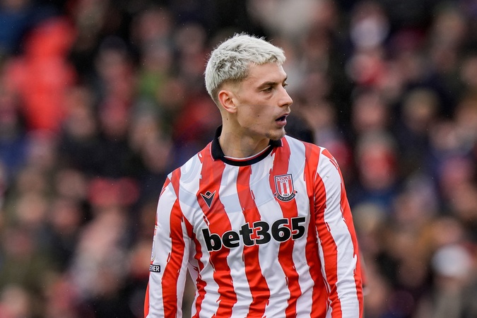 Tomas Rigo of Stoke City during the Sky Bet Championship match Stoke City vs Southampton at Bet365 Stadium, Stoke-on-Trent, United Kingdom, 31st January 2026, Credit:Maynard Manyowa/News Images / Avalon