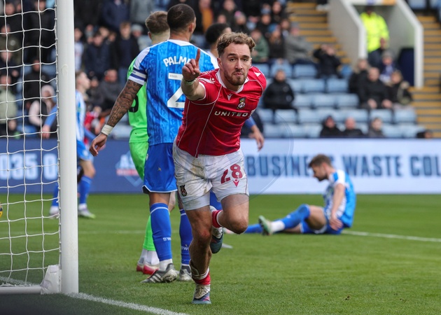 Sam Smith of Wrexham celebrates his goal to make it 0-1 during the Sky Bet Championship match Sheffield Wednesday vs Wrexham at Hillsborough, Sheffield, United Kingdom, 31st January 2026, Credit:Richard Bierton/News Images / Avalon