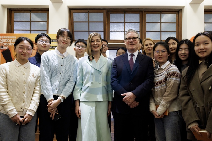 31/01/2026. Shanghai, China. Prime Minister Keir Starmer and Actor Rosamund Pike meet with performing arts students at the Design Innovation Institute Shanghai., Credit:Lauren Hurley / Avalon