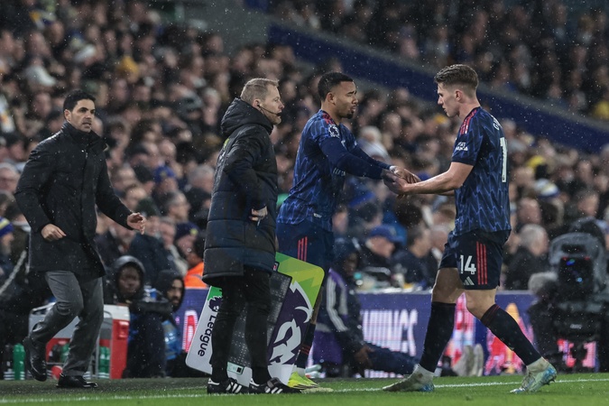 Viktor Gyokeres of Arsenal is substituted for Gabriel Jesus of Arsenal during the Premier League match Leeds United vs Arsenal at Elland Road, Leeds, United Kingdom, 31st January 2026, Credit:Mark Cosgrove/News Images / Avalon