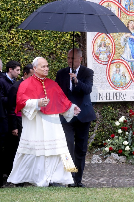 January 31, 2026, Vatican City, Vatican Gardens, Pope Leo XIV blesses the Marian Mosaic and the Statue of St. Rose of Lima donated by Peru, Credit:Alessandra Benedetti/Pool / Avalon