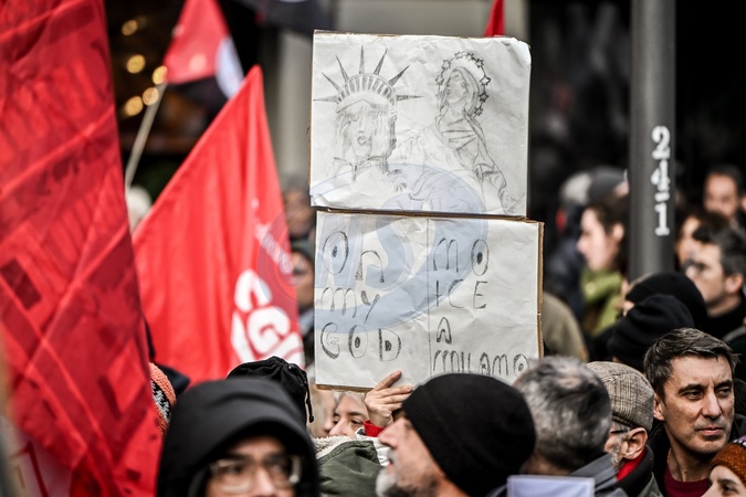 January 31, 2026, Milan. ICE OUT. Left-wing protest against the possible presence of U.S. Special Forces during the Milan-Cortina Winter Olympics., Credit:Nicola Marfisi / Avalon