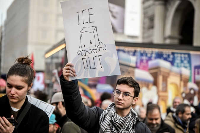 January 31, 2026, Milan. ICE OUT. Left-wing protest against the possible presence of U.S. Special Forces during the Milan-Cortina Winter Olympics., Credit:Nicola Marfisi / Avalon
