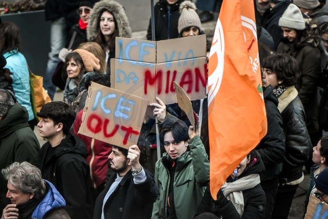 January 31, 2026, Milan. ICE OUT. Left-wing protest against the possible presence of U.S. Special Forces during the Milan-Cortina Winter Olympics., Credit:Nicola Marfisi / Avalon