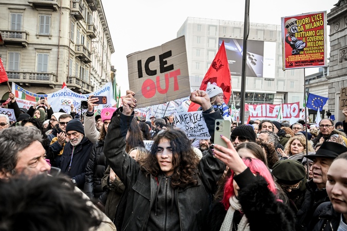 January 31, 2026, Milan. ICE OUT. Left-wing protest against the possible presence of U.S. Special Forces during the Milan-Cortina Winter Olympics., Credit:Nicola Marfisi / Avalon
