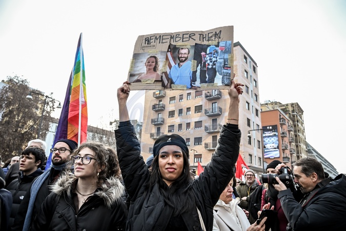 January 31, 2026, Milan. ICE OUT. Left-wing protest against the possible presence of U.S. Special Forces during the Milan-Cortina Winter Olympics., Credit:Nicola Marfisi / Avalon